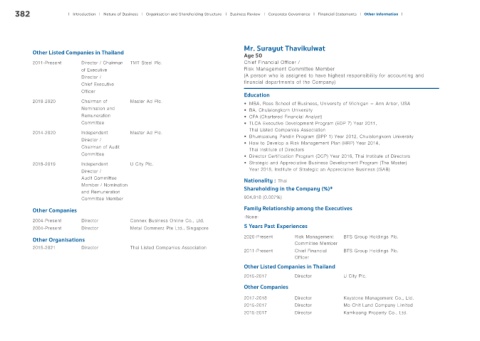 2015-2021 Director Thai Listed Companies Association 2011-Present Chief Financial BTS Group Holdings Plc.