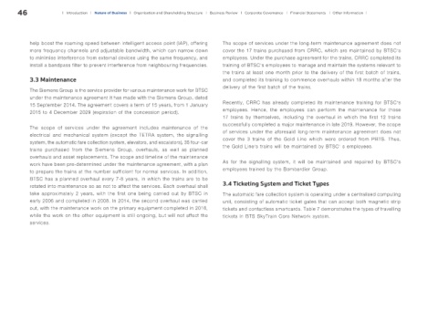 work have been pre-determined under the maintenance agreement, with a plan As for the signalling system, it will be maintained and repaired by BTSC’s