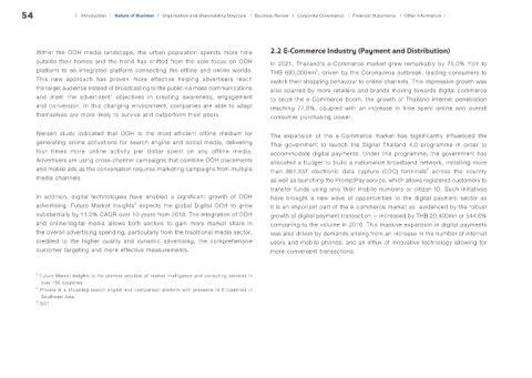 outside their homes and the trend has shifted from the sole focus on OOH In 2021, Thailand’s e-Commerce market grew remarkably by 75.0% YoY to