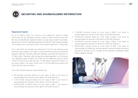 BTS Group Holdings Public Company Limited 3.3 Securities and Shareholders Information 67