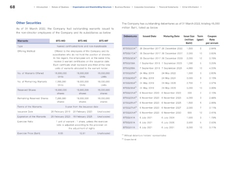 As of 31 March 2022, the Company had outstanding warrants issued to million Baht, listed as below