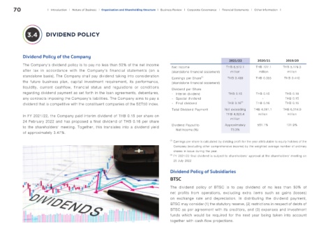 The dividend policy of BTSC is to pay dividend of no less than 50% of