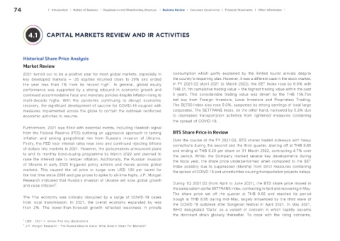 inflation and arising geopolitical risk from Russia’s invasion of Ukraine. Over the course of the FY 2021/22, BTS shares traded sideways with heavy