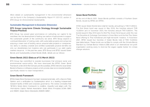 Sustainable Management in Economic Dimension BTSG issued Green Bonds twice total ten bonds, amounting to THB 21,600mn.