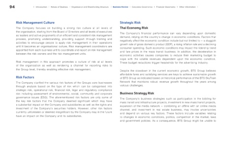 the Group level, thereby enabling effective risk management. Despite the slowdown in the current economic growth, BTS Group believes