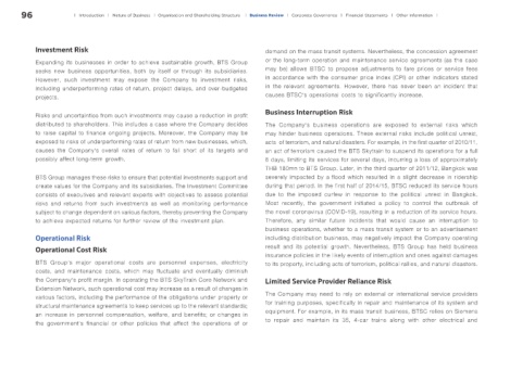 BTS Group manages these risks to ensure that potential investments support and severely impacted by a flood which resulted in a slight decrease in ridership