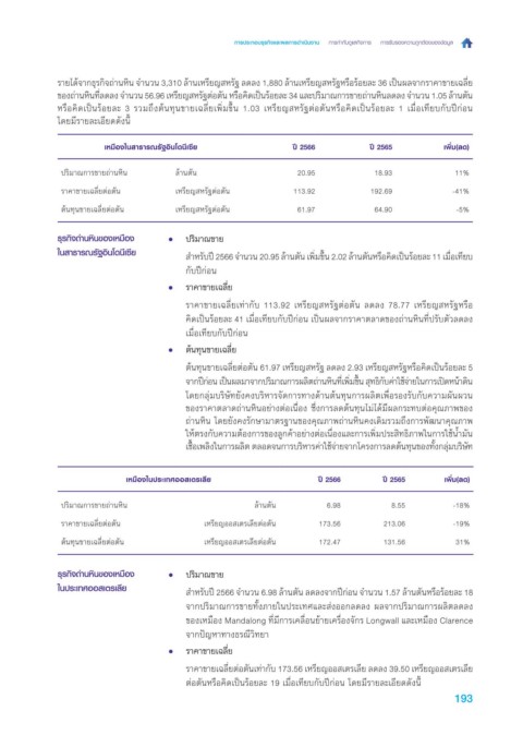 ราคาข ายเฉล ี�ยตอ ตัน เห รียญ อ อ สเตรเล ียต่อ ตัน 173.56 213.06 -19%