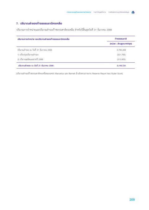 ป ริมาณก ารจ าห น่ายแล ะป ริมาณสารอ งก ๊าซ ธ รรมช าติคงเห ล ่อ สำาห รับป สิ�นสด ว ันที� 31 ธ ันว าคม 2566