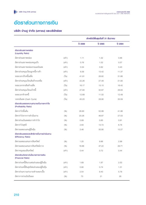อ ัตราส่ว นสภ าพ คล อ งห มุนเรว (เท่า) 0.76 1.02 0.57