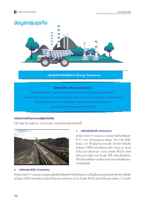 ด าเนินก ารโด ย PT. Indominco Mandiri ซ ่�งเป ็นบริษ ัทยอ ย