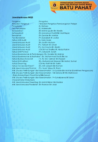 Ketua Keselamatan & Perlindungan: En. Zuraide Bin Moktar