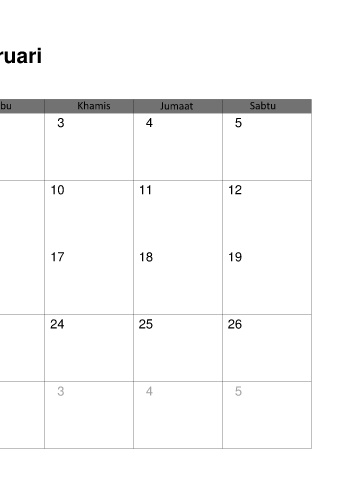 Februari Ahad Isnin Selasa Rabu Khamis Jumaat Sabtu 30 31 1 2 3 4 5 6 7 8 9 10 11 12 13 14 15 16 17 18 19 20 21 22 23 24 25 26 27 28 1 2 3 4 5 Pulang Cuti Umum Bermalam