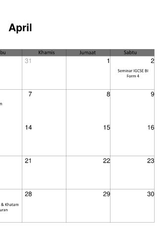 Ahad Isnin Selasa Rabu Khamis Jumaat Sabtu