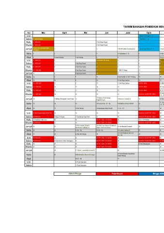 Khamis 10 SPM 2021 7 5 Hari Raya Puasa 9 7 TWD P. Pinang 11 8 6 10 SPMRSM 8 Aspirasi Muzikal & 5 9 PEP. SEM II Khamis