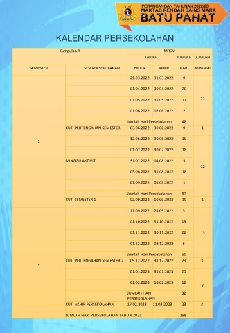 CUTI PERTENGAHAN SEMESTER 2 09.12.2022 31.12.2022 23 3