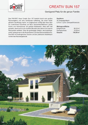 Das FAVORIT Haus Creativ Sun 157 besticht durch sein großes Dachform