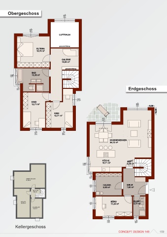 Obergeschoss Erdgeschoss Kellergeschoss CONCEPT DESIGN 149 159