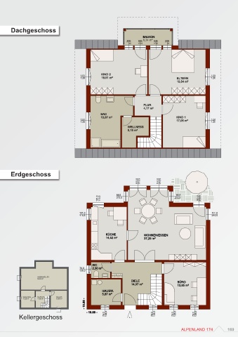 Dachgeschoss 6,34 m² Erdgeschoss Kellergeschoss ALPENLAND 174 169