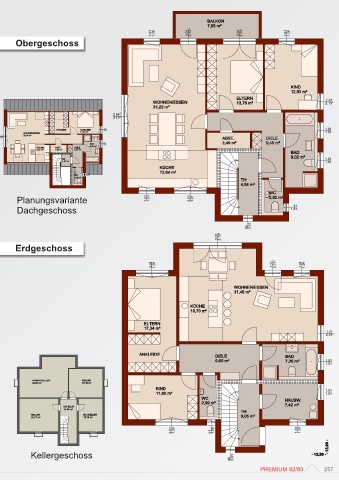 Obergeschoss Planungsvariante Dachgeschoss Erdgeschoss Kellergeschoss PREMIUM 92/93 257