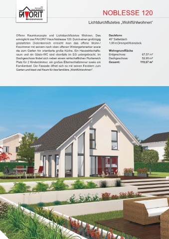 ermöglicht das FAVORIT Haus Noblesse 120. Durch einen großzügig 40° Satteldach