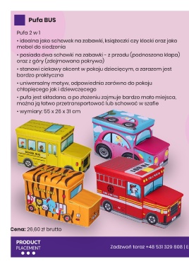 • posiada dwa schowki na zabawki - z przodu (podnoszona klapa) • stanowi ciekawy akcent w pokoju dziecięcym, a zarazem jest