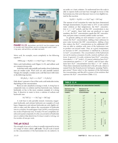 Nitric acid, hydrochloric acid (Figure 11.15), and sulfuric acid tions have H 3 O concentrations less than 1 × 10 mole/L.
