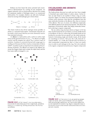 The ethane molecule has all the hydrogen atoms possible, so The six-carbon ring structure shown in Figure 12.9A has