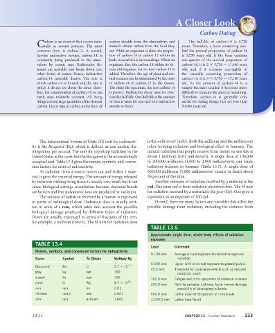 sion factors for units of radioactivity. radiation sickness in humans (Table 13.5). A single dose of