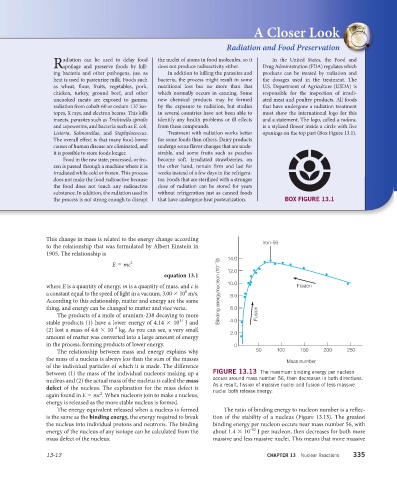 between (1) the mass of the individual nucleons making up a FIGURE 13.13 The maximum binding energy per nucleon