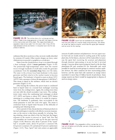 station. There is one large generator in line with four steam turbines FIGURE 13.20 Spent fuel rod assemblies are removed and