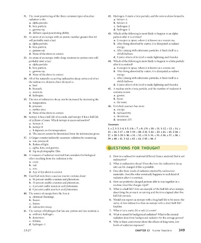 31. The most penetrating of the three common types of nuclear 42. Hydrogen-3 emits a beta particle, and the new nucleus formed is