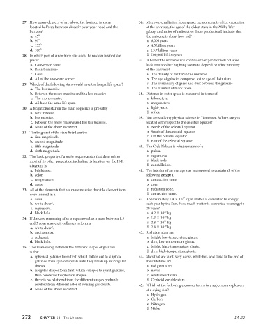 27. How many degrees of arc above the horizon is a star 36. Microwave radiation from space, measurements of the expansion