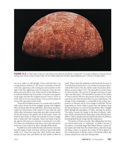 FIGURE 15.4 A photomosaic of Mercury made from pictures taken by the Mariner 10 spacecraft. The surface of Mercury is heavily cratered,