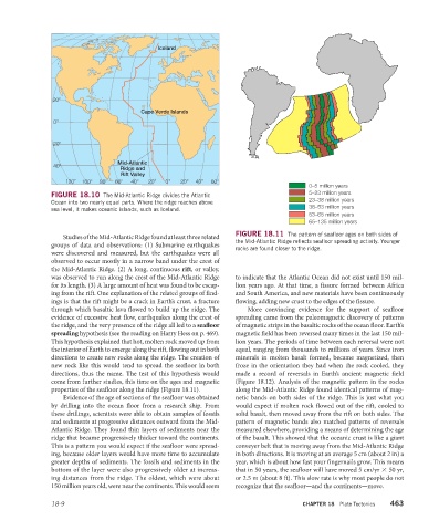 properties of the seafloor along the ridge (Figure 18.11). along the Mid-Atlantic Ridge found identical patterns of mag-