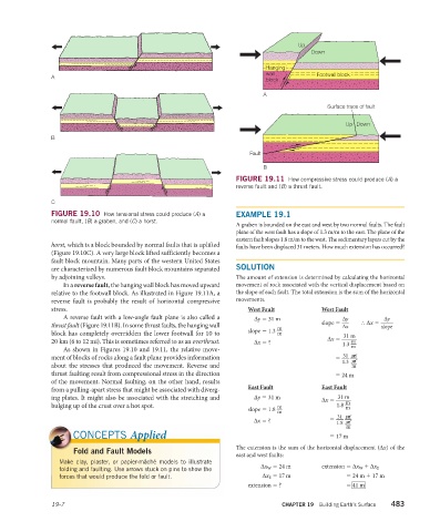 relative to the footwall block. As illustrated in Figure 19.11A, a the slope of each fault. The total extension is the sum of the horizontal