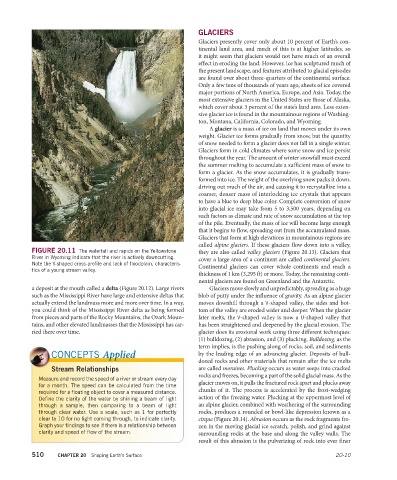 a deposit at the mouth called a delta (Figure 20.12). Large rivers Glaciers move slowly and unpredictably, spreading as a huge