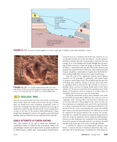 FIGURE 21.14 Similarity of fossils suggests similarity of ages, even in different rocks widely separated in space.