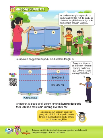 Anggaran isi padu air di dalam tangki B kurang daripada