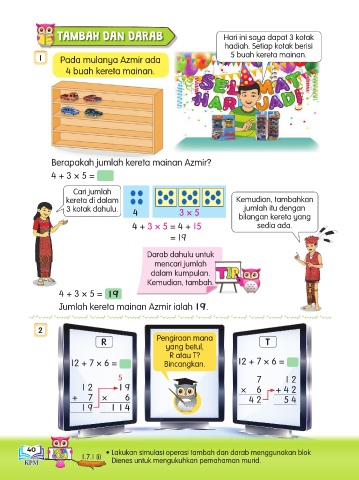 4 + 3 × 5 = 4 + 15 sedia ada.