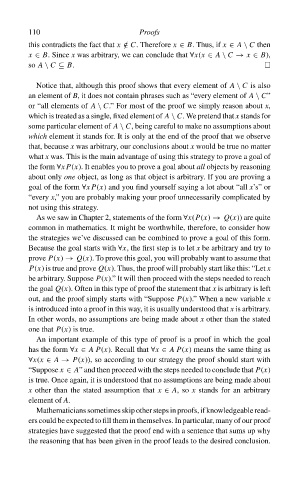 or “all elements of A \ C.” For most of the proof we simply reason about x,