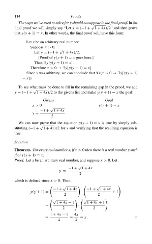 final proof we will simply say “Let y = (−1 + 1 + 4x)/2” and then prove