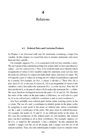 by a comma. For example, let D(x, y) mean “x divides y.” Then D(6, 18) is