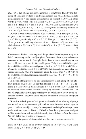 trary element of A × (B ∩ C) and then proving p ∈ (A × B) ∩ (A × C). Be-