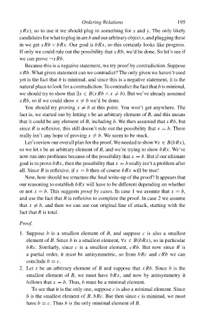 smallest element of B, we must have bRx, and now by antisymmetry it