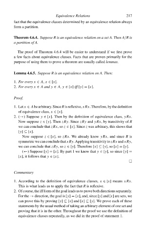 Lemma 4.6.5. Suppose R is an equivalence relation on A. Then: