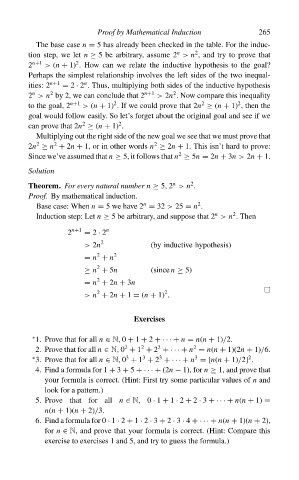 tion step, we let n ≥ 5 be arbitrary, assume 2 > n , and try to prove that