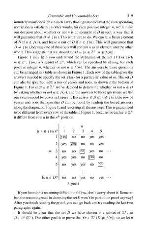 ones surrounded by boxes in Figure 1. Because n ∈ D iff n /∈ f (n), the row of