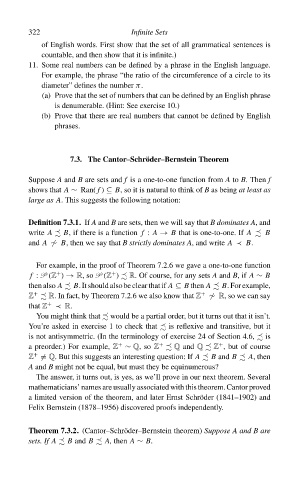 Theorem 7.3.2. (Cantor–Schr¨oder–Bernstein theorem) Suppose A and B are