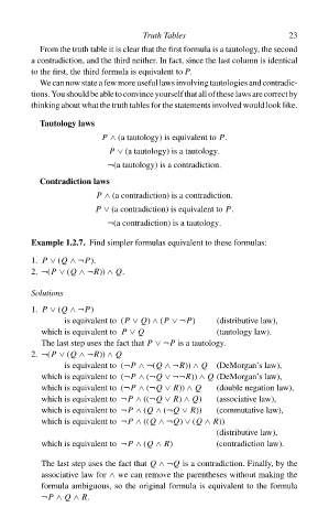 We can now state a few more useful laws involving tautologies and contradic-