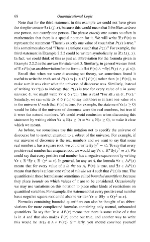 positive real number has a square root, we would say ∀x ∈ R ∃y(y = x). We